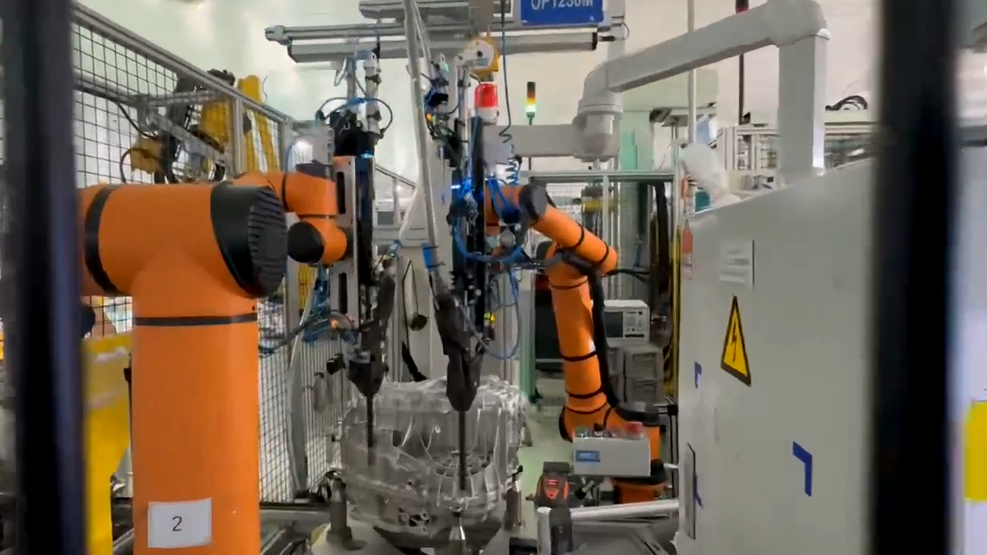 合箱螺栓是变速箱壳体接合面密封与结构强度的核心保障,多颗螺栓需按规定顺序、对称分步预拧,避免壳体变形与漏油。双机器人协同作业实现多轴同步、扭矩-角度精准控制,并完成拧紧数据实时采集与追溯。