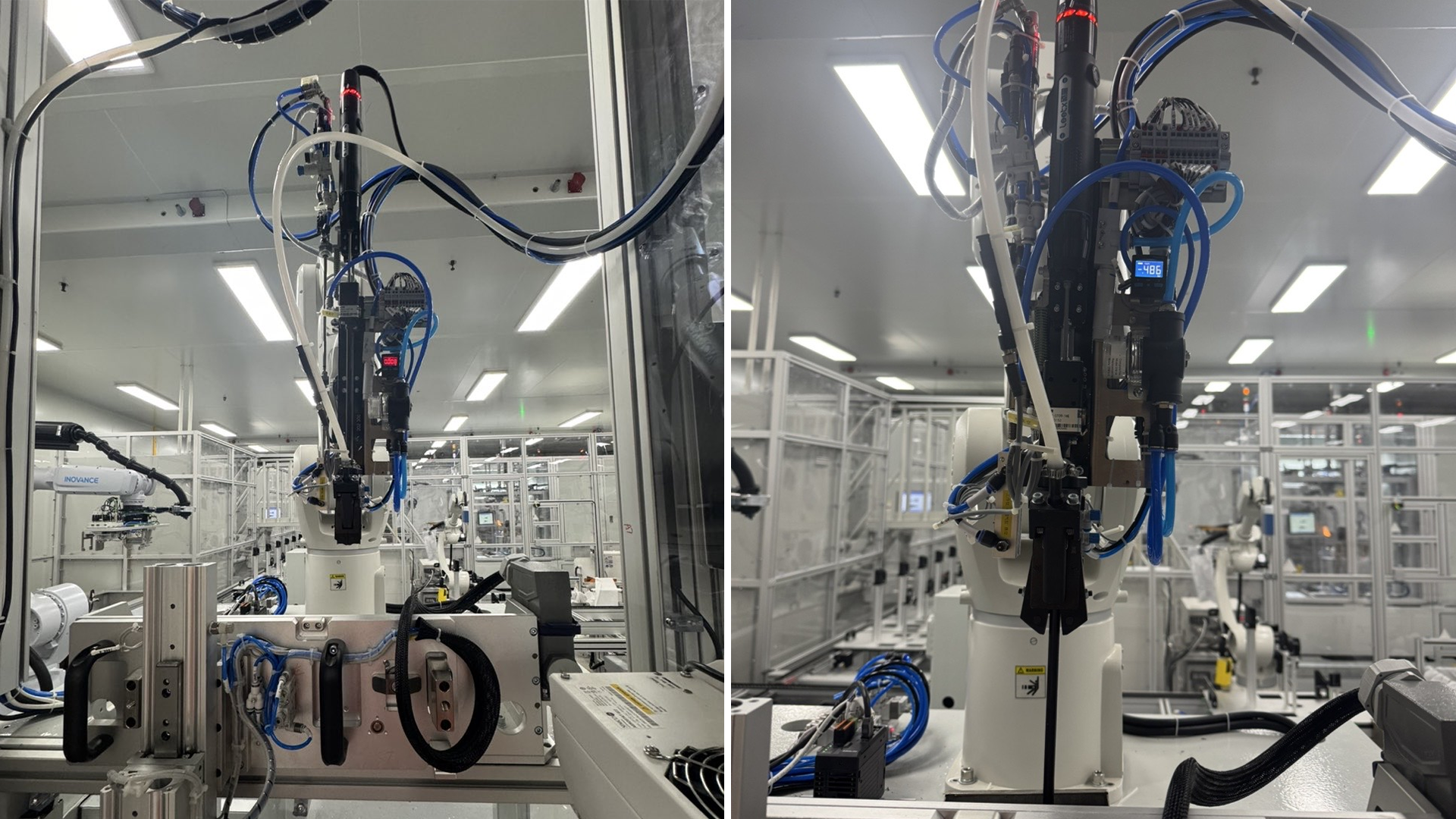车灯装配涉及透镜支架、灯体壳、调光机构等多处微小螺钉连接,对扭矩精度与外观无损要求极高,节拍紧凑。机器人末端集成智能电批与自动送钉,实现对位—拧紧—追溯全流程,保障密封性与光学装配精度。