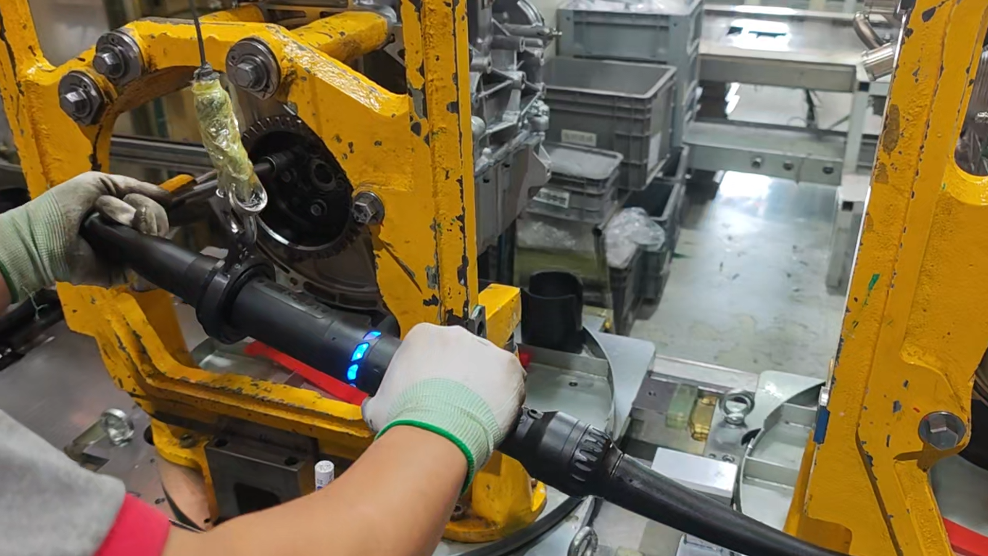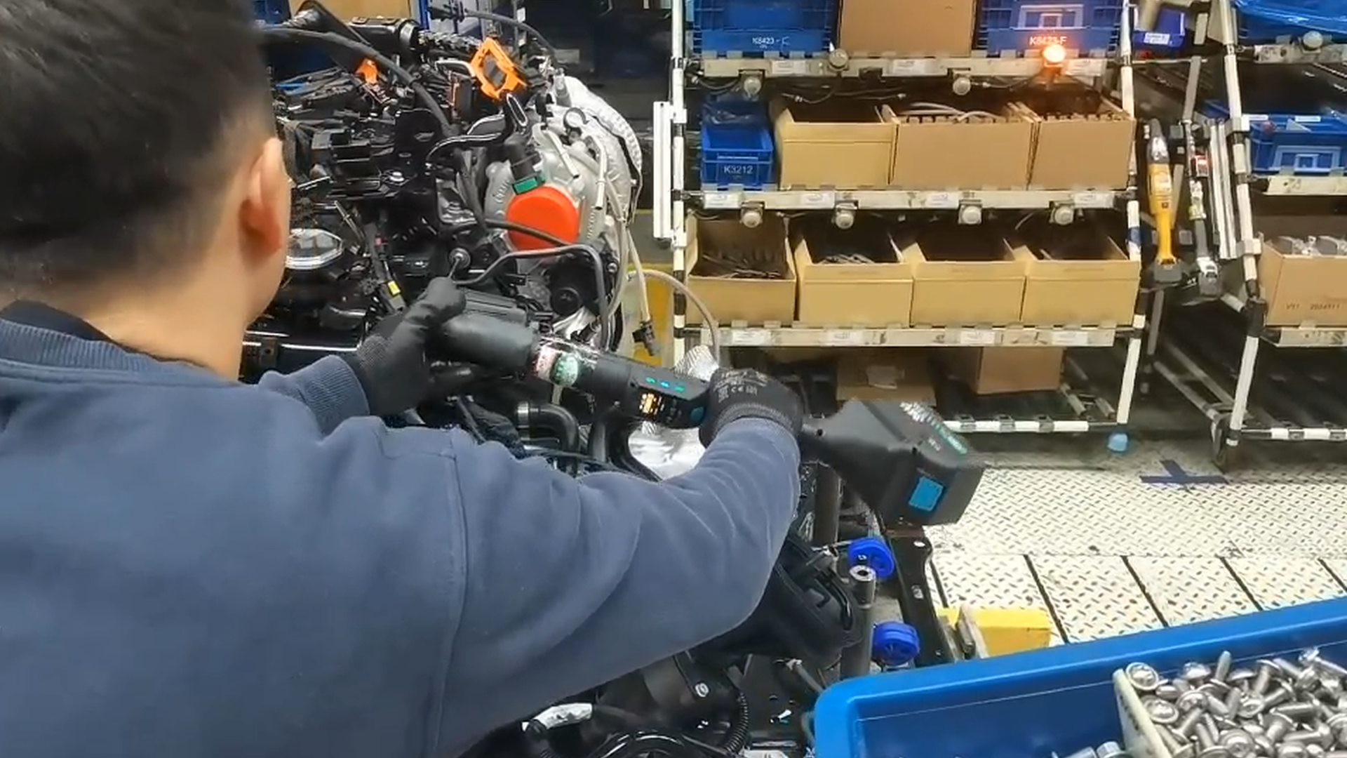 发动机传感器(如曲轴位置、爆震、油压、温度等)是 ECU 精准控制的"神经末梢",安装扭矩偏差会直接影响信号采集精度乃至整机标定表现,且螺栓规格小、安装点位分散、防错要求高。手持式智能拧紧枪配合 SPS 物料指示与扫码绑定,确保每一颗传感器螺栓装配精准、有据可查。